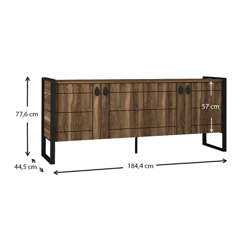 Μπουφές μελαμίνης Ursula Megapap χρώμα καρυδί 180x40x77,6εκ.
