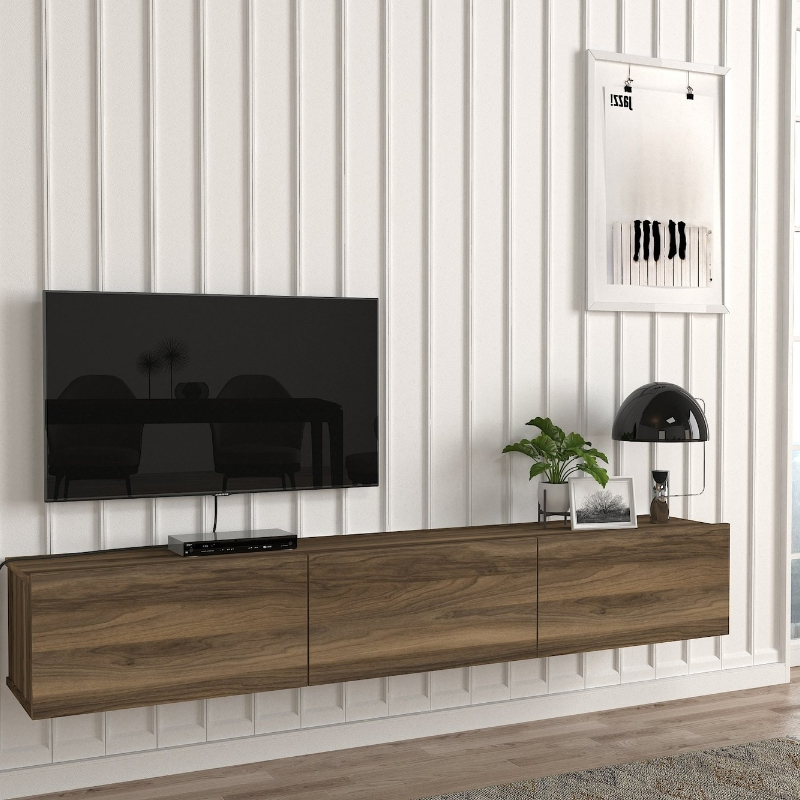 Έπιπλο τηλεόρασης επιτοίχιο Damla Megapap με LED χρώμα καρυδί 180×29,5×29,5εκ.