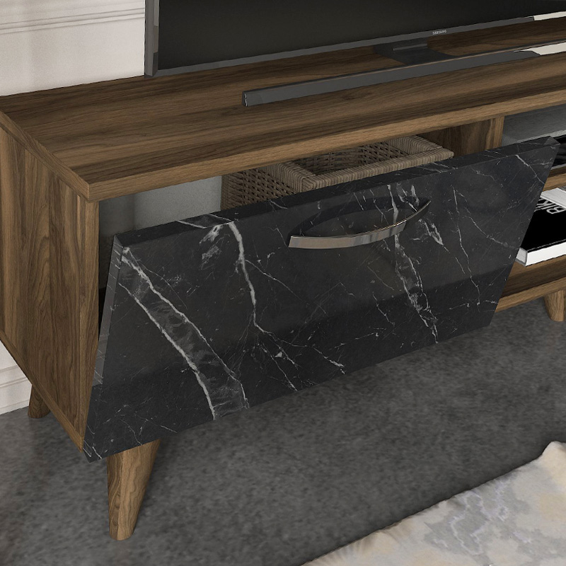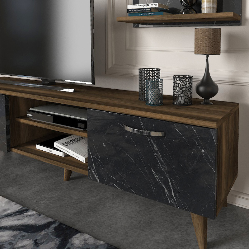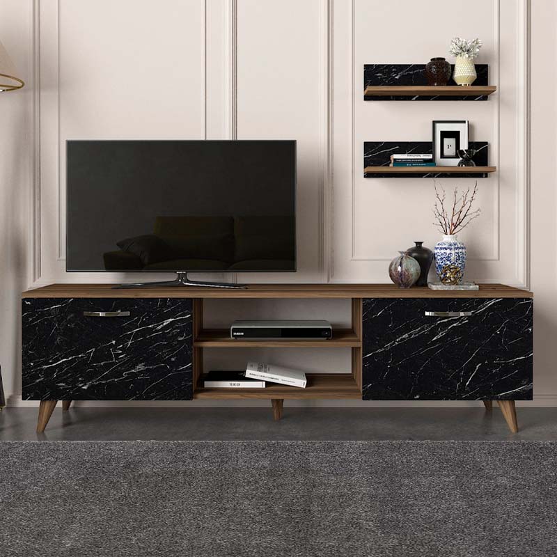 Έπιπλο τηλεόρασης Geacles Megapap χρώμα καρυδί – μαύρο εφέ μαρμάρου 180x40x50εκ.
