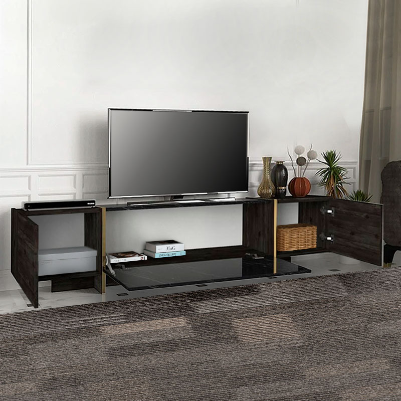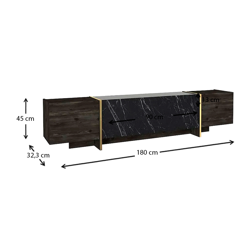 Έπιπλο τηλεόρασης Veyron Megapap χρώμα μαύρο rebab – μαύρο εφέ μαρμάρου 180×32,3×45εκ.