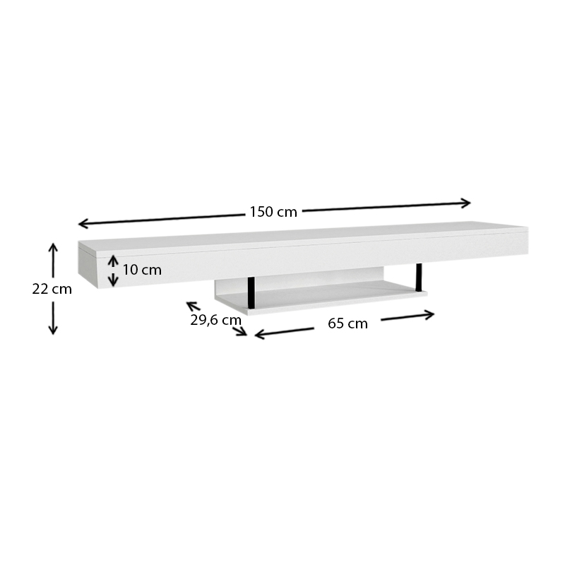 Έπιπλο τηλεόρασης επιτοίχιο Albares Megapap με LED χρώμα λευκό 150×29,6×22εκ.