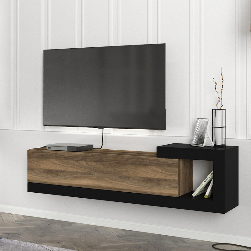 Έπιπλο τηλεόρασης επιτοίχιο Volare Megapap χρώμα καρυδί – μαύρο 150×29,6×38,6εκ.