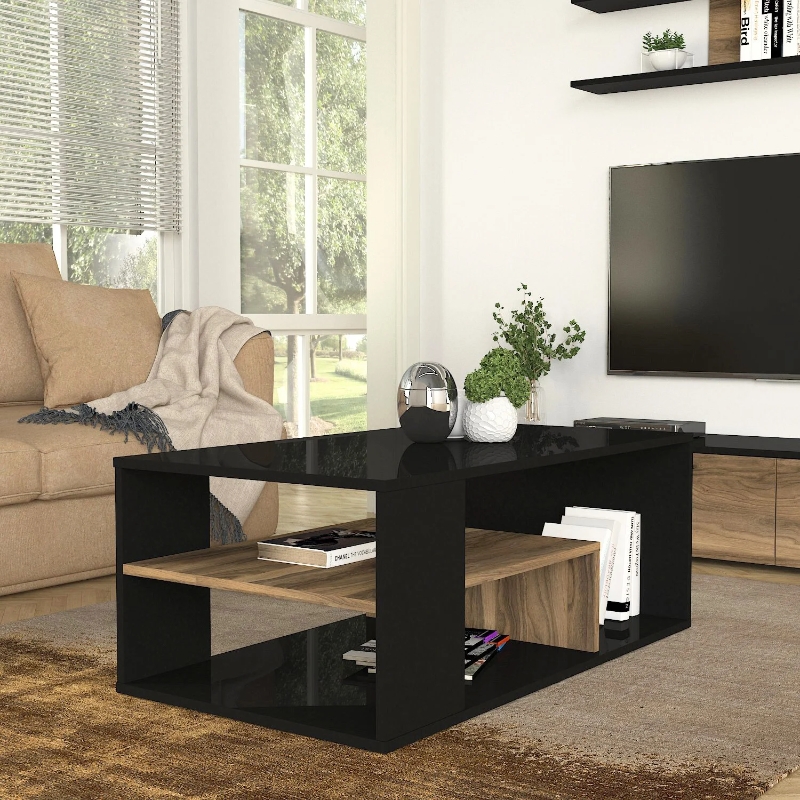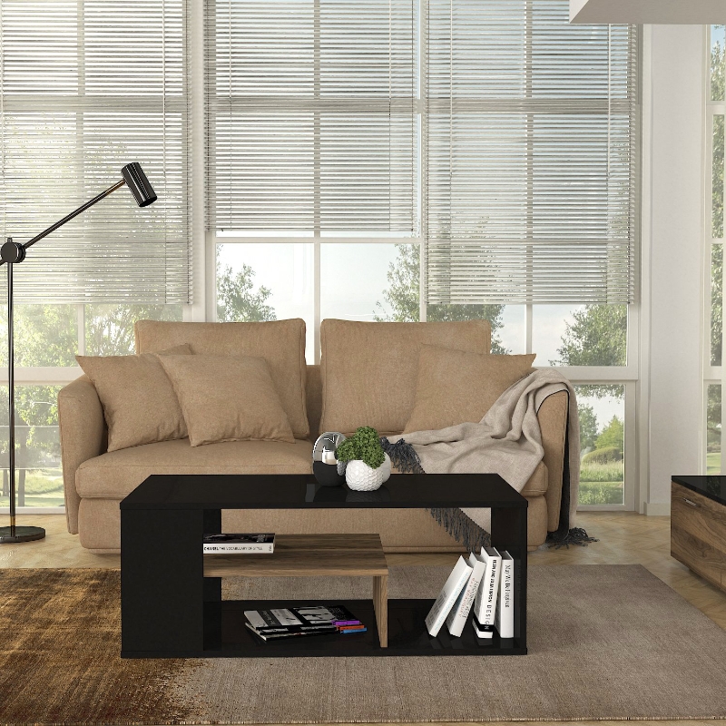 Τραπεζάκι σαλονιού Abdera Megapap χρώμα μαύρο – καρυδί 110x60x42εκ.