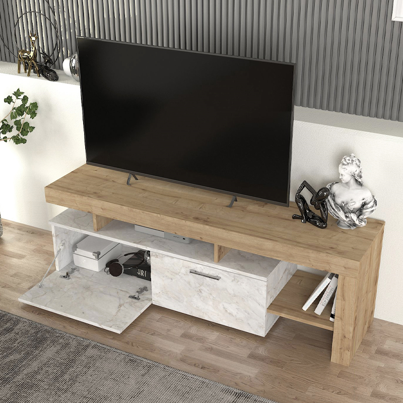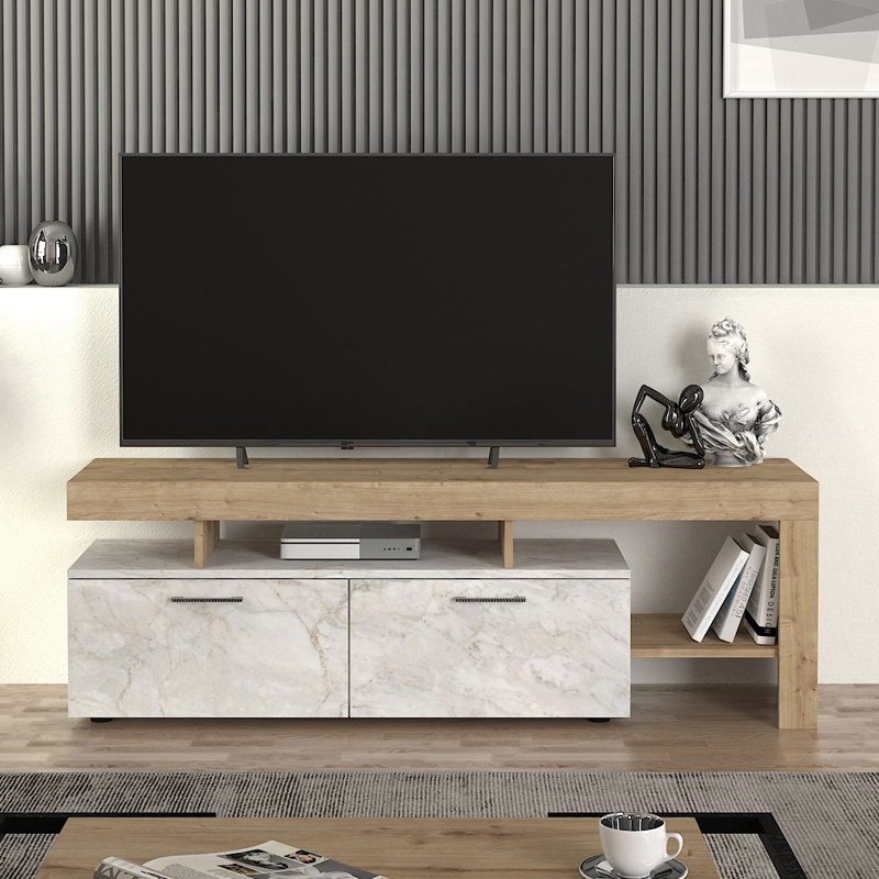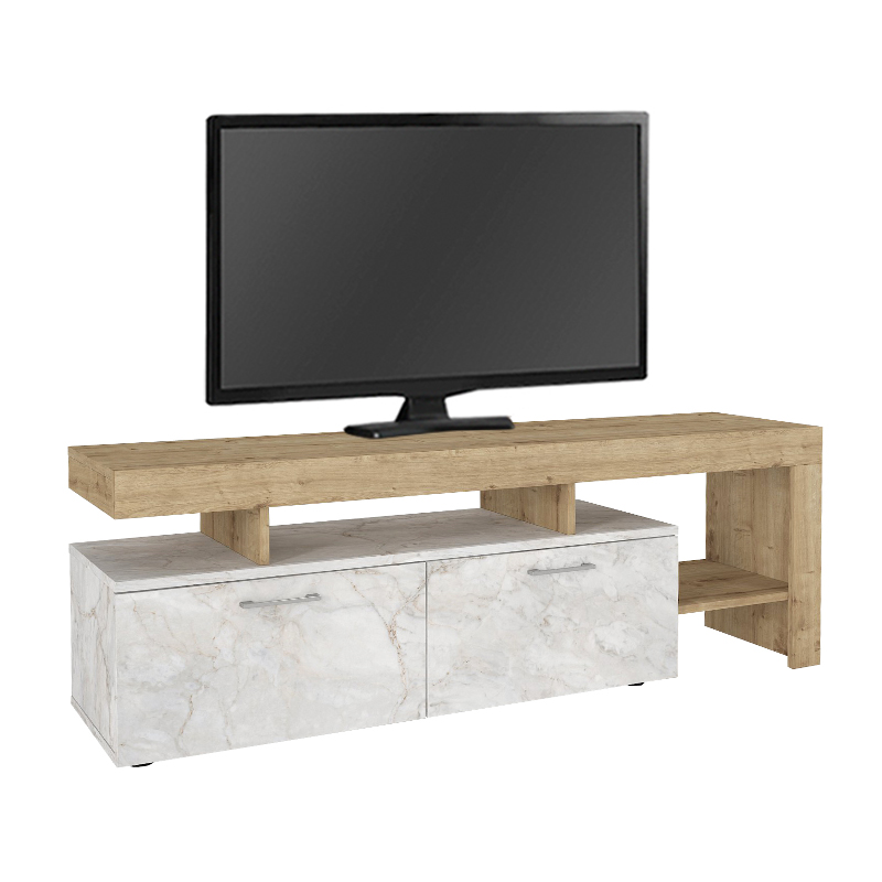 Έπιπλο τηλεόρασης Acnes Megapap χρώμα λευκό εφέ μαρμάρου – sapphire oak 160x40x53εκ.
