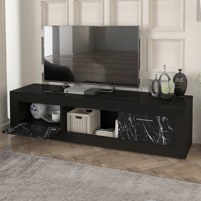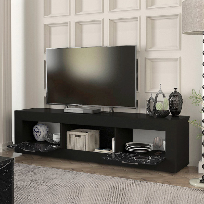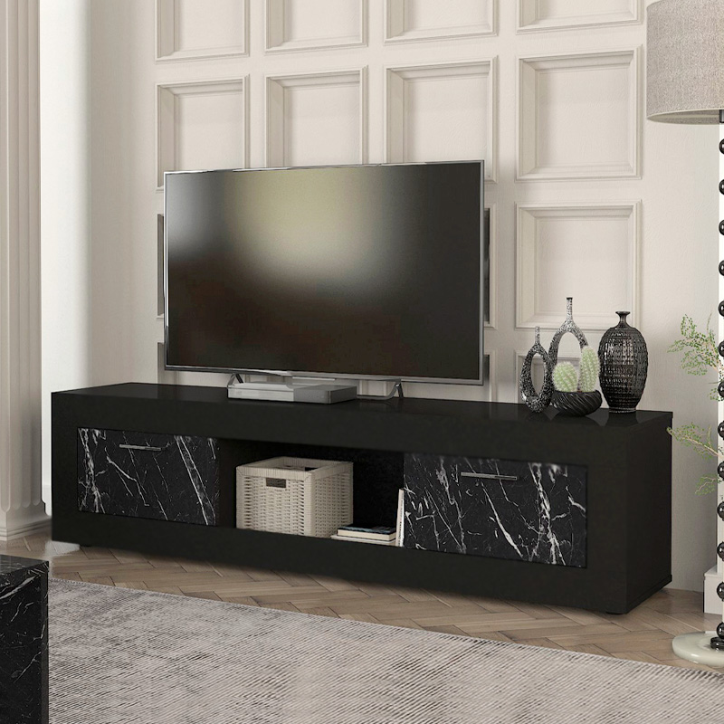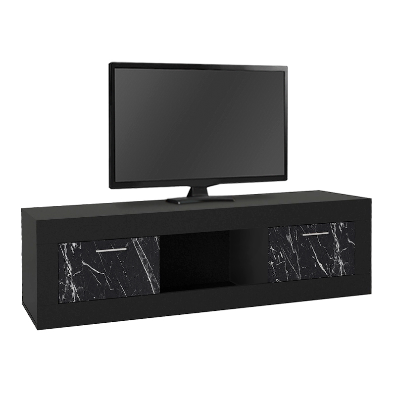 Έπιπλο τηλεόρασης Davin Megapap χρώμα μαύρο – μαύρο εφέ μαρμάρου 180x40x47εκ.