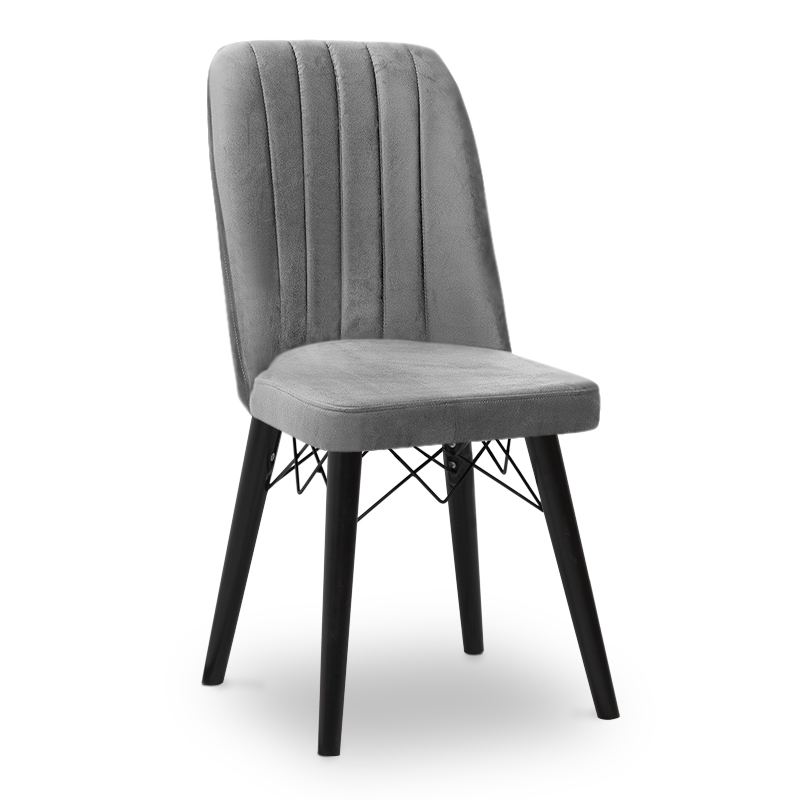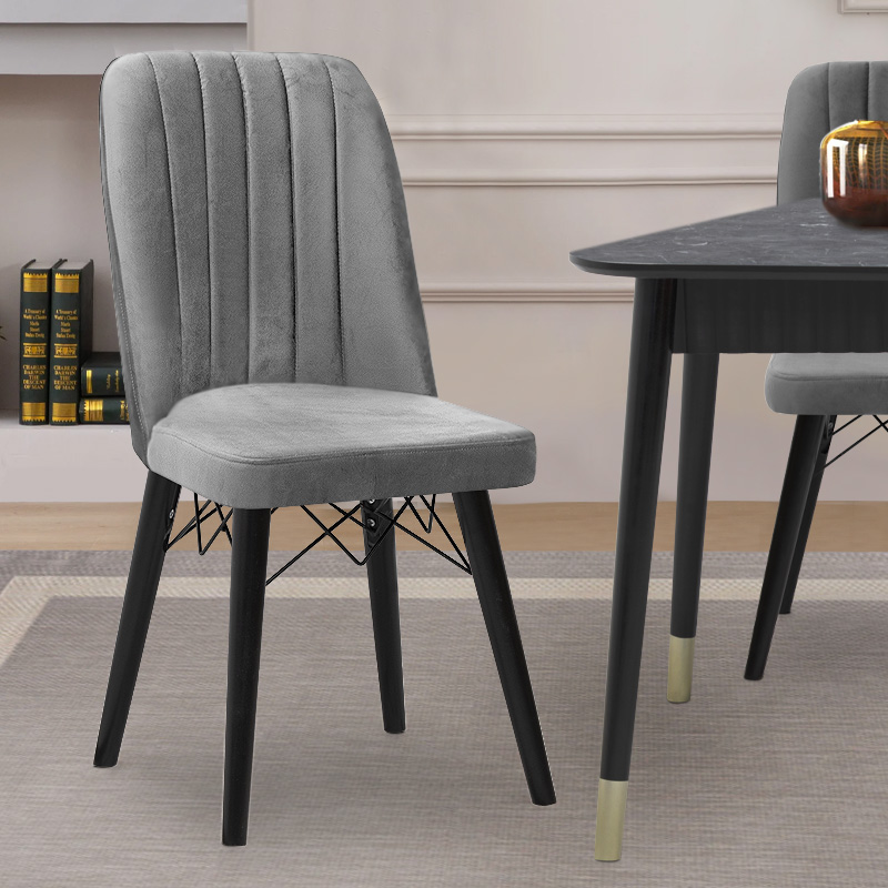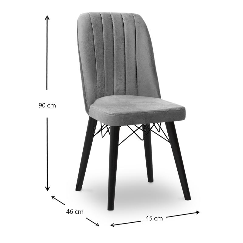 Καρέκλα τραπεζαρίας Carla Megapap από βελούδο χρώμα γκρι – μαύρο πόδι 45x46x90εκ.