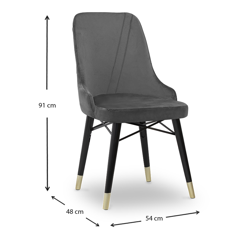 Καρέκλα τραπεζαρίας Floria Megapap από βελούδο χρώμα γκρι – μαύρο/χρυσό πόδι 54x48x91εκ.