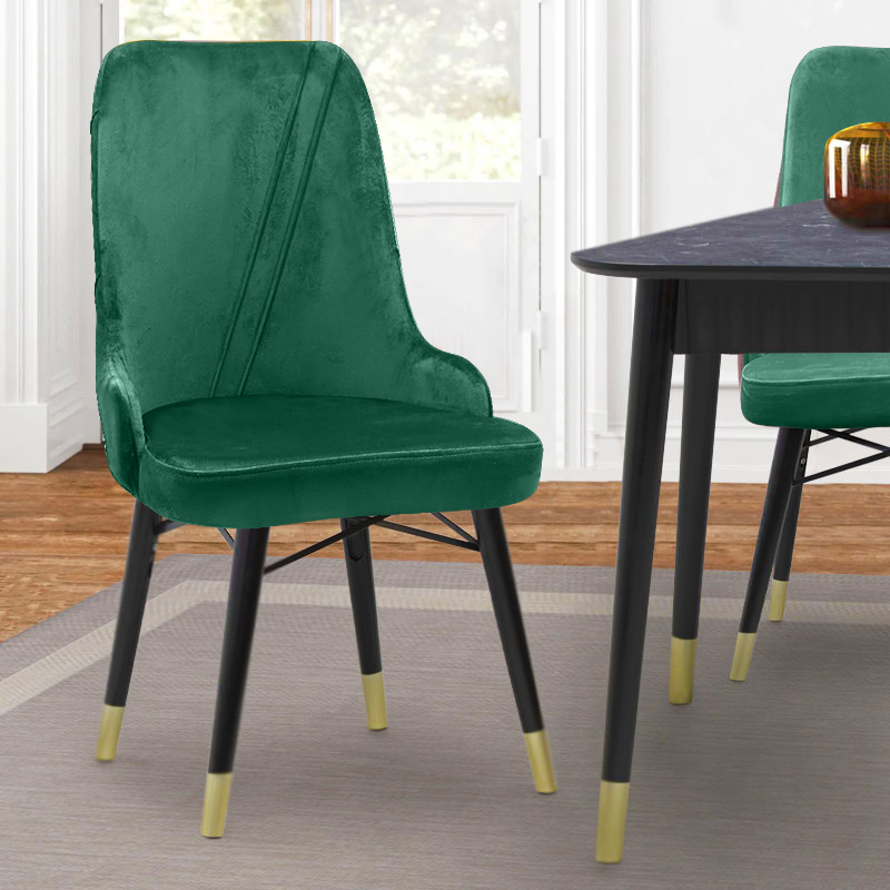 Καρέκλα τραπεζαρίας Floria Megapap από βελούδο χρώμα κυπαρισσί – μαύρο/χρυσό πόδι 54x48x91εκ.