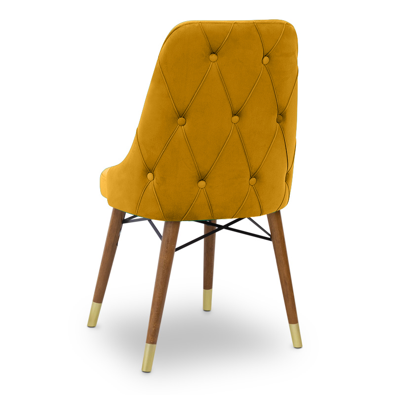 Καρέκλα τραπεζαρίας Venus Megapap από βελούδο χρώμα μουσταρδί – καρυδί/χρυσό πόδι 53x48x95εκ.