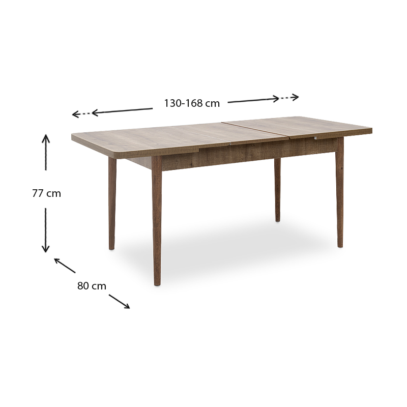 - Διαστάσεις: Μήκος 130/168 x Βάθος 80 x Ύψος 77 εκ.