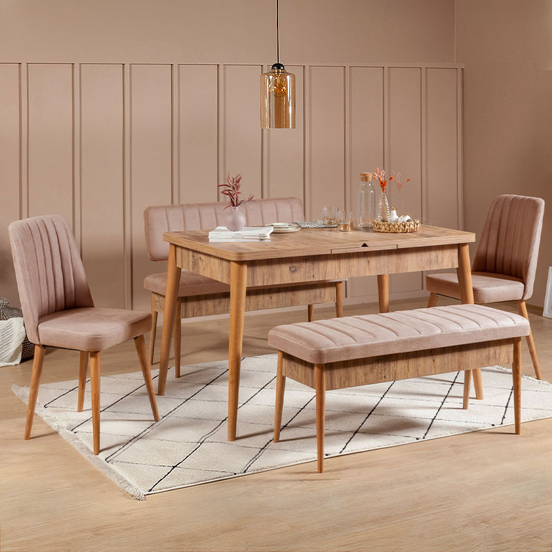 Καναπές διθέσιος – Παγκάκι Alden Megapap από μελαμίνη – βελούδο χρώμα μπεζ 110x40x85εκ.