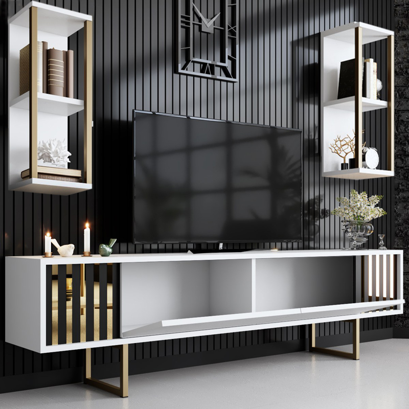 Σύνθεση τηλεόρασης Goldline Megapap χρώμα λευκό – χρυσό 180x30x48εκ.