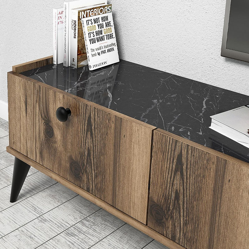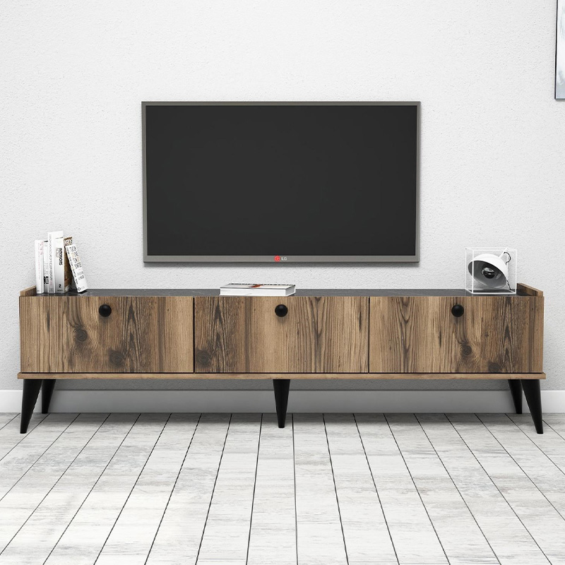Έπιπλο τηλεόρασης Lidya Megapap χρώμα καρυδί – μαύρο εφέ μαρμάρου 180x35x49εκ.