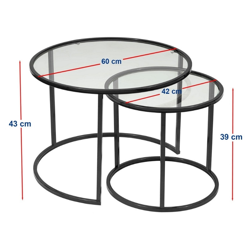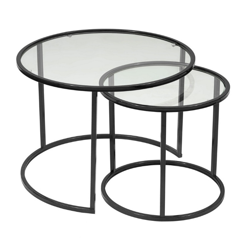 Τραπεζάκι σαλονιού σετ 2 τμχ Vetro Megapap μέταλλο – γυαλί χρώμα μαύρο Ø60×43εκ.
