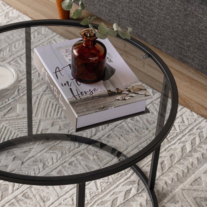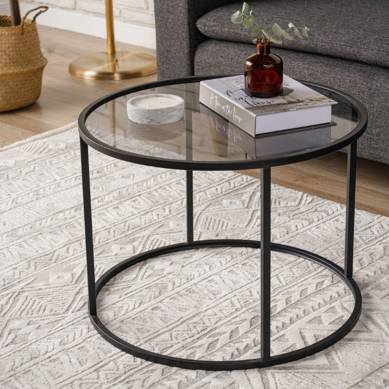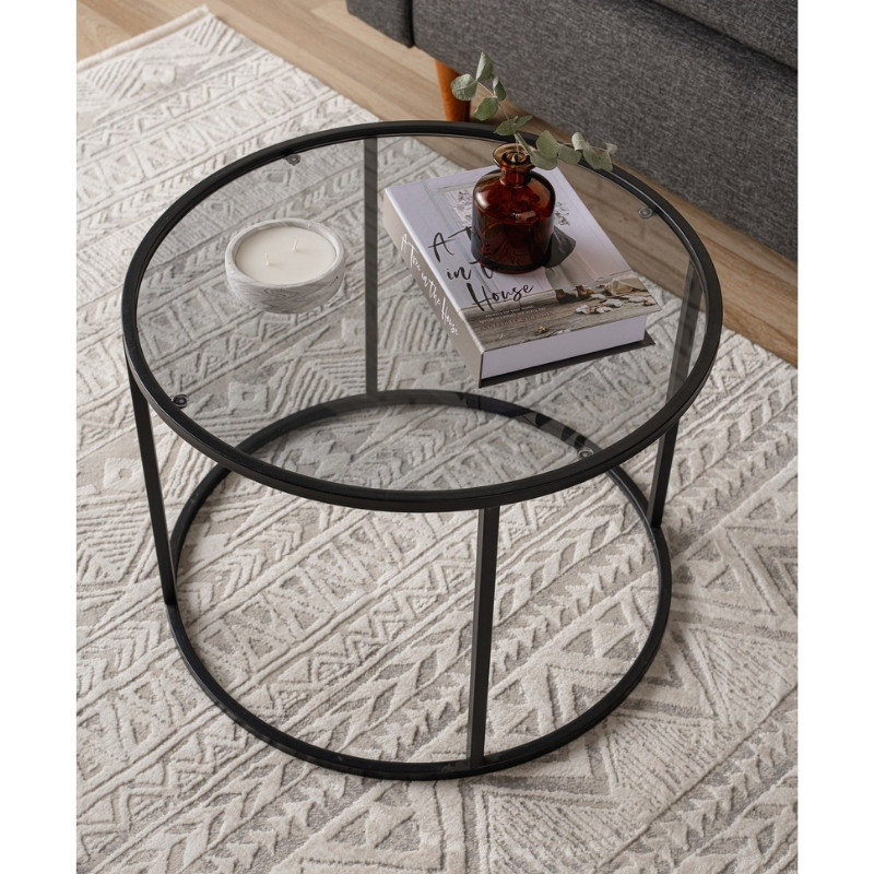 Τραπεζάκι σαλονιού Startis Megapap μέταλλο – γυαλί χρώμα μαύρο Ø60×43εκ.