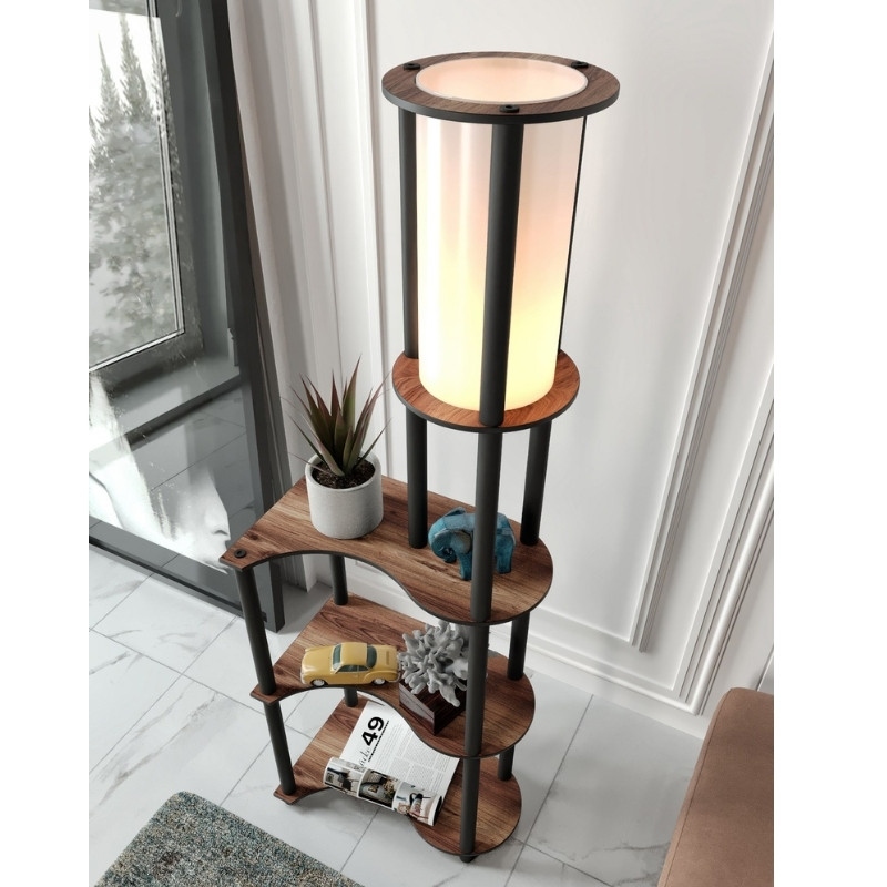Φωτιστικό δαπέδου Nova I Megapap MDF – PVC ύφασμα χρώμα καρυδί – μαύρο 50x30x140εκ.