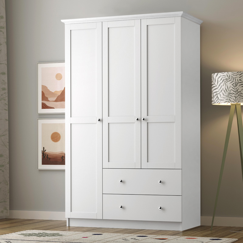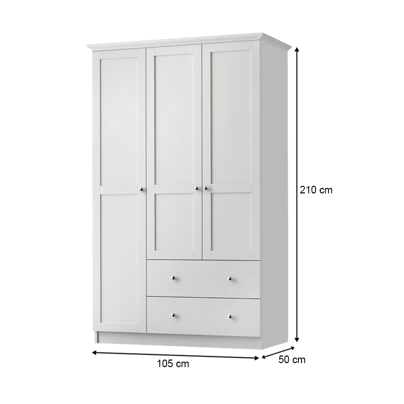 Ντουλάπα ρούχων Emily Megapap τρίφυλλη με συρτάρια χρώμα λευκό 105x50x210εκ.