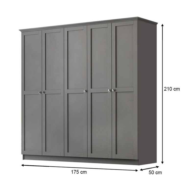 Ντουλάπα ρούχων Emily Megapap πεντάφυλλη χρώμα ανθρακί 175x50x210εκ.