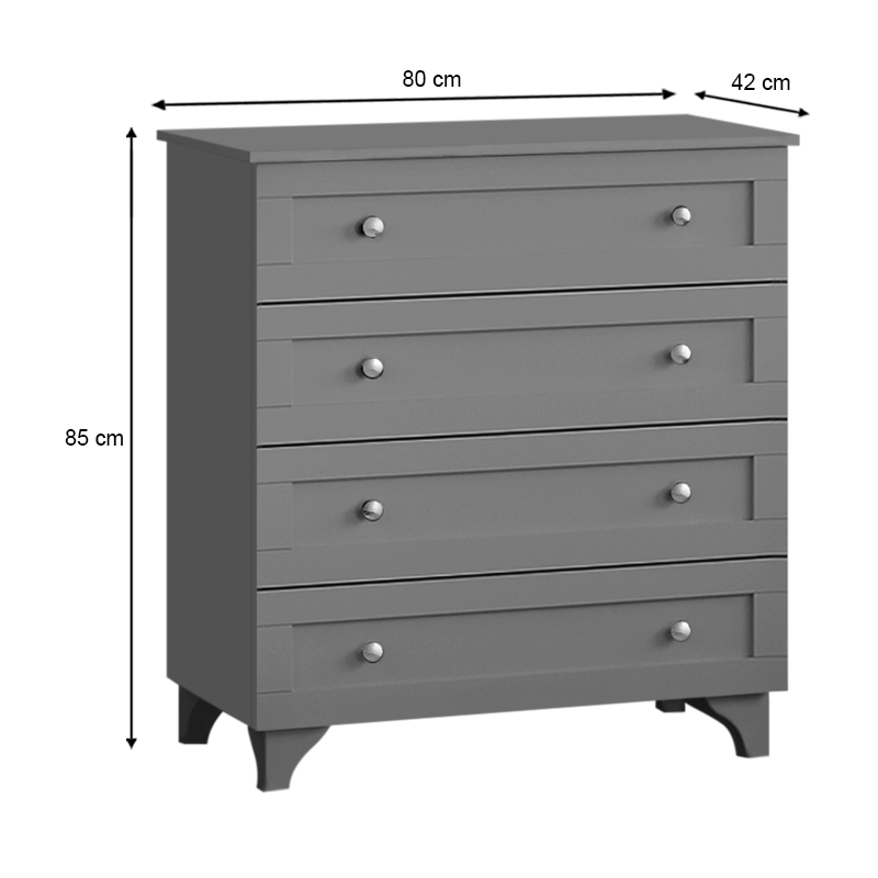 - Διαθέτει τέσσερα ευρύχωρα συρτάρια.