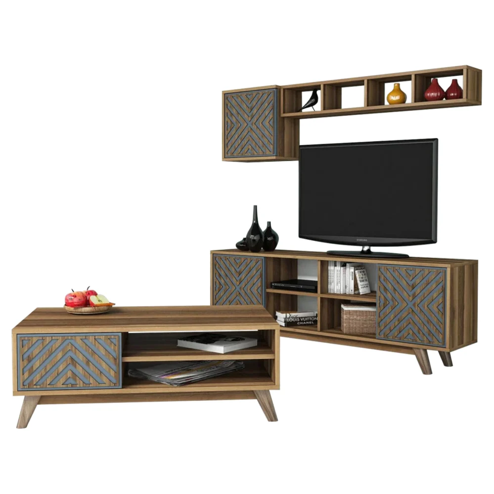 Σύνθεση τηλεόρασης Serine Megapap χρώμα λευκό – sapphire oak 170x37x45εκ.