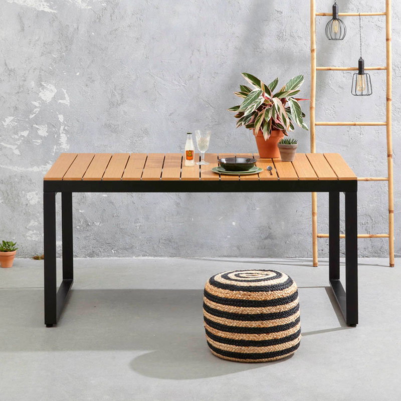 Τραπέζι κήπου Poseidon Megapap μεταλλικό – μασίφ ξύλο χρώμα μαύρο – καρυδί 150x82x75εκ.