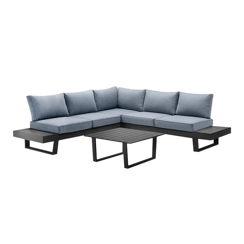 Σαλόνι κήπου γωνιακό Lyra Megapap σετ 3 τμχ μέταλλο – ξύλο χρώμα μαύρο