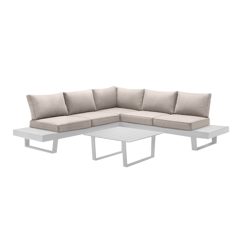 Σαλόνι κήπου γωνιακό Lyra Megapap σετ 3 τμχ μέταλλο – ξύλο χρώμα λευκό