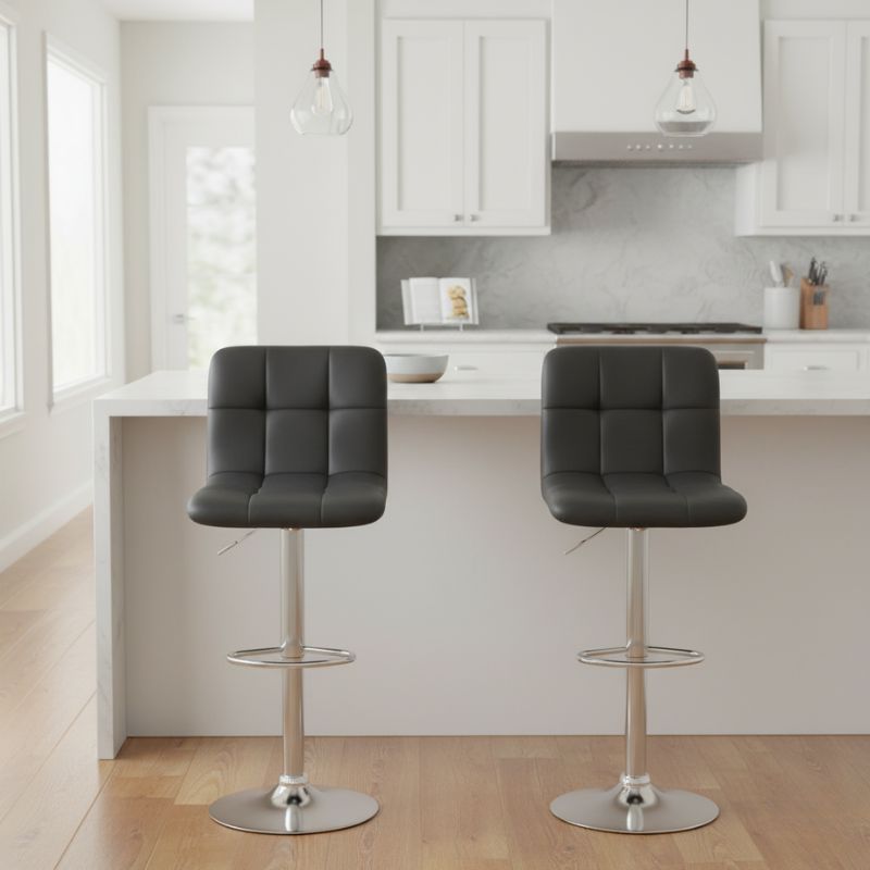 Σκαμπό μπαρ Carmelo Megapap με ρυθμιζόμενο ύψος PU μαύρο – βάση χρωμίου 45x42x90/113εκ.