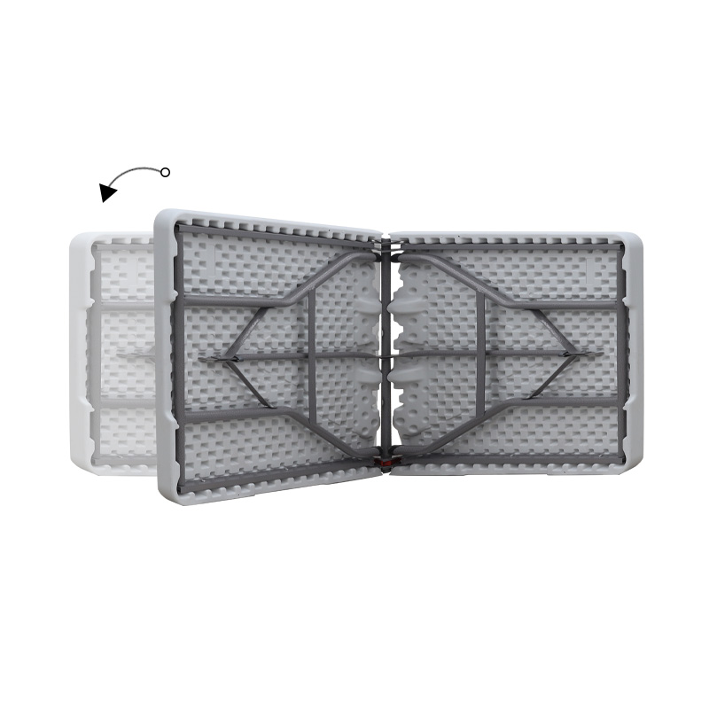 • Όταν το τραπέζι δεν χρησιμοποιείται, τα πόδια αναδιπλώνονται κάτω από την επιφάνεια, στο εσωτερικό της «βαλίτσας», διευκολύνοντας σημαντικά την αποθήκευση και τη μεταφορά του.