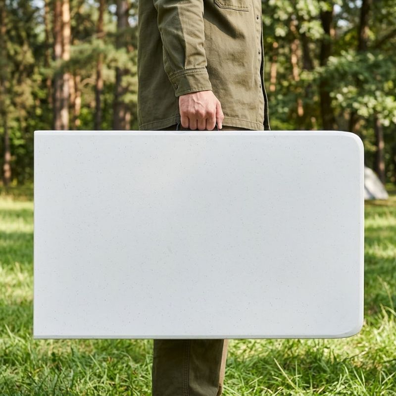 - Μονοκόμματη επιφάνεια κατασκευασμένη από πολυαιθυλένιο υψηλής πυκνότητας (HDPE), ιδιαίτερα ανθεκτικό υλικό που προσφέρει μεγάλη αντοχή στη φθορά, την υγρασία και την καθημερινή χρήση.