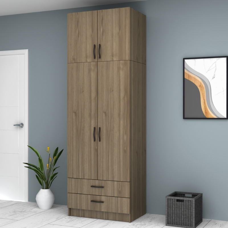 Ντουλάπα ρούχων Ricardo Megapap δίφυλλη με πατάρι και συρτάρια χρώμα καρυδί 80×51,8×240εκ.