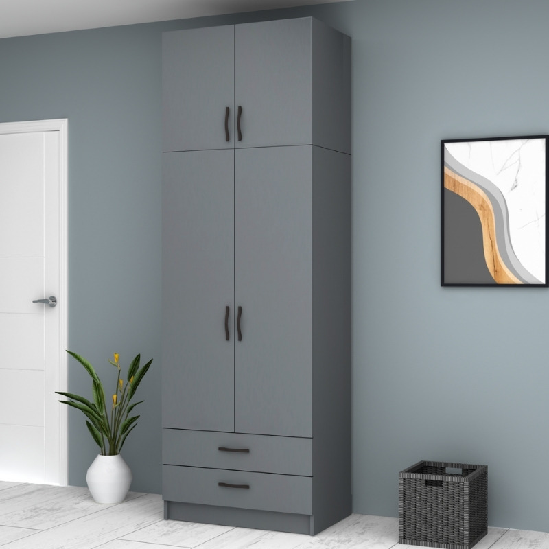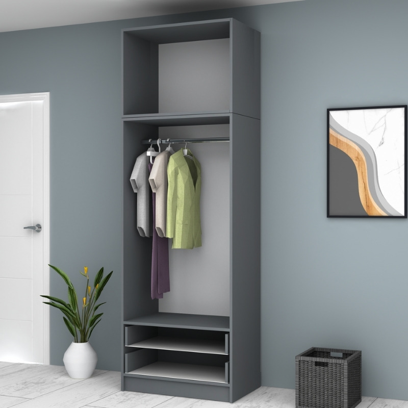 Ντουλάπα ρούχων Ricardo Megapap δίφυλλη με πατάρι και συρτάρια χρώμα ανθρακί 80×51,8×240εκ.
