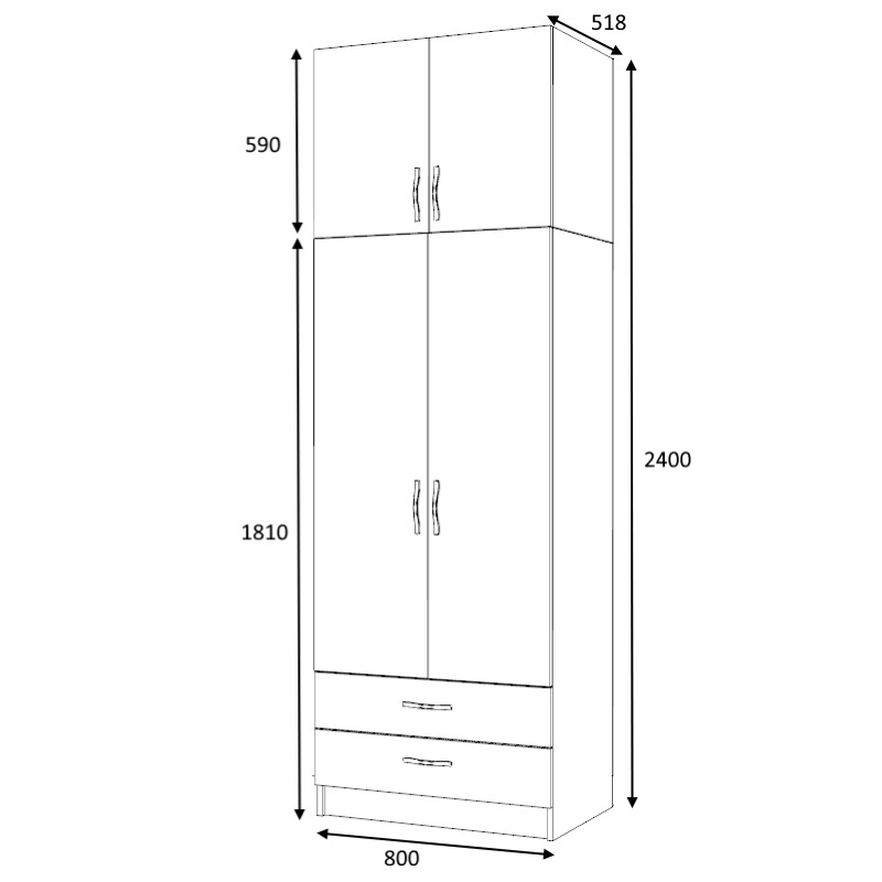 - Διαστάσεις ντουλάπας: Μήκος 80 x Βάθος 51,8 x Ύψος 181 εκ.