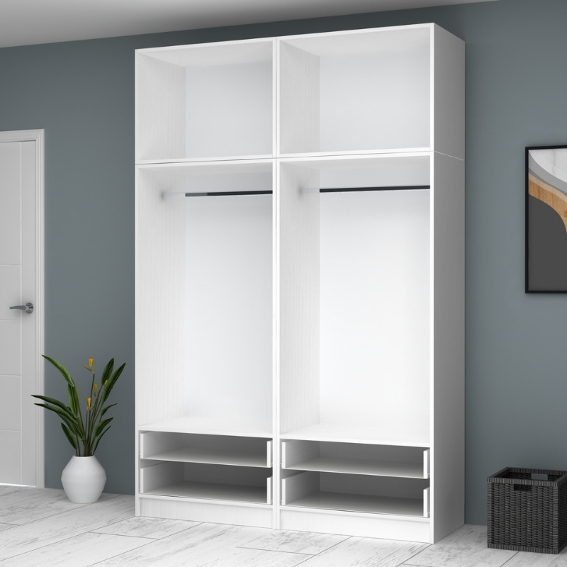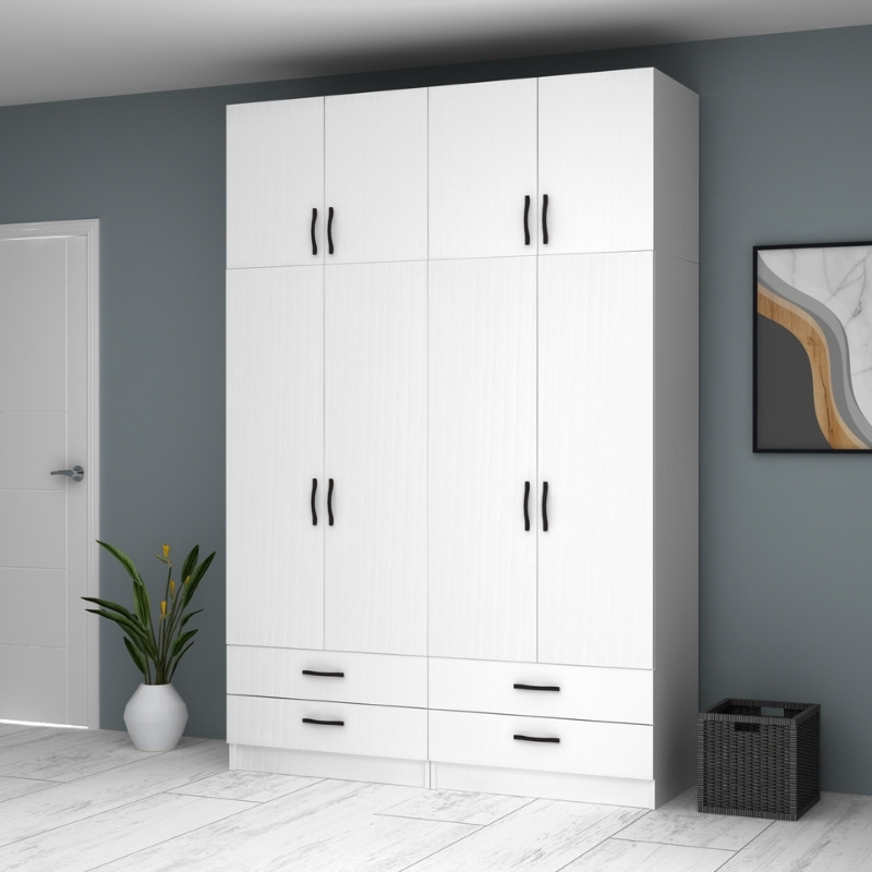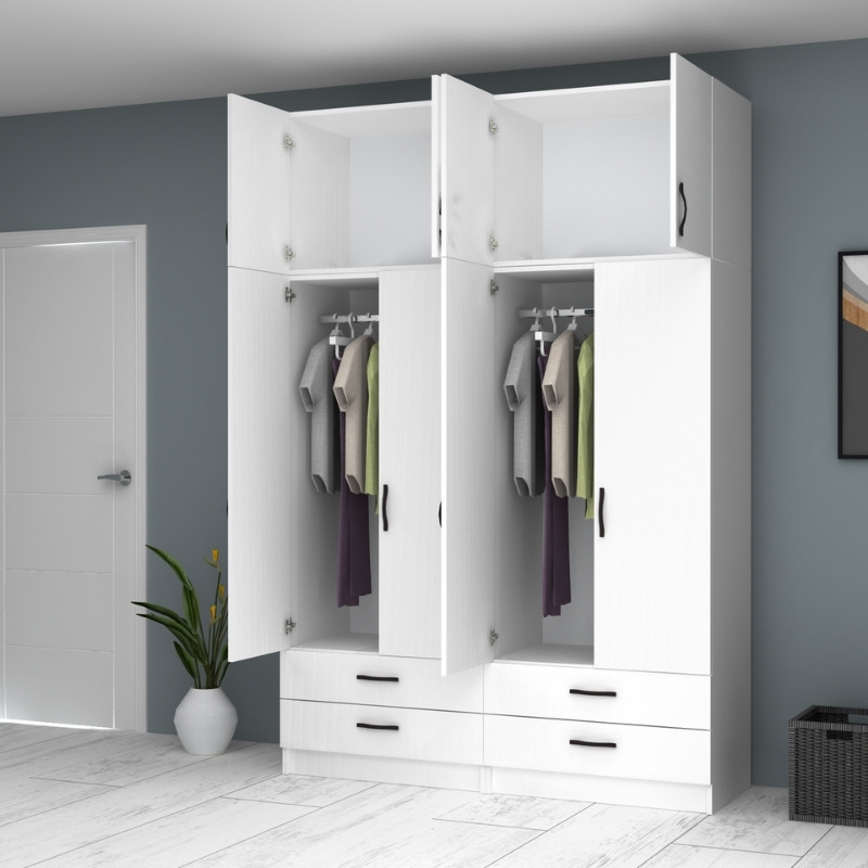 Ντουλάπα ρούχων Ricardo Megapap τετράφυλλη με πατάρι και συρτάρια χρώμα λευκό 160×61,8×240εκ.