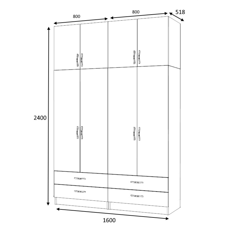 - Διαστάσεις ντουλάπας: Μήκος 160 x Βάθος 51,8 x Ύψος 181 εκ.