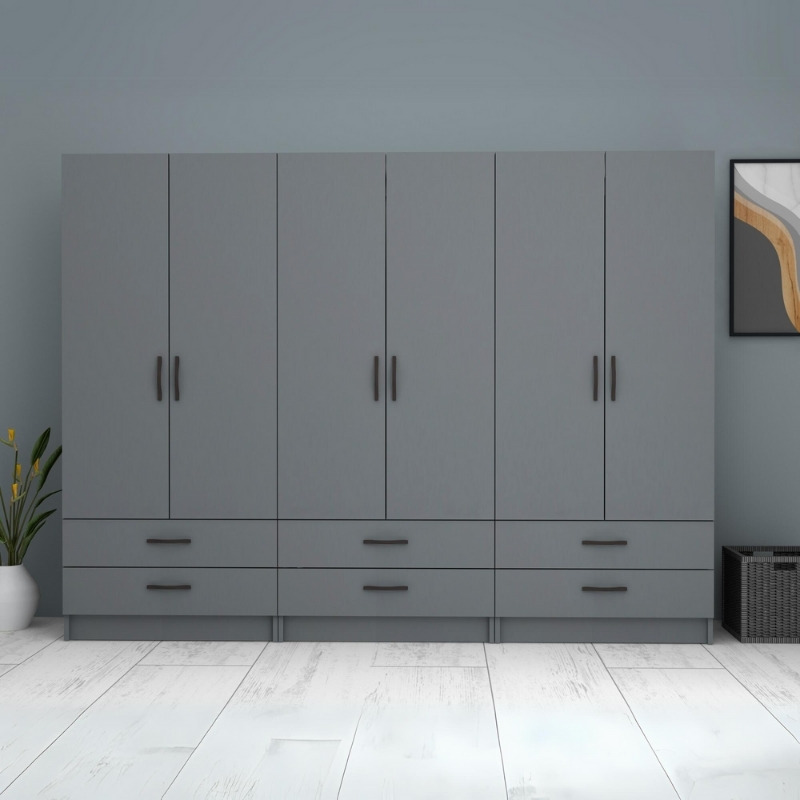 Ντουλάπα ρούχων Ricardo Megapap εξάφυλλη με συρτάρια χρώμα ανθρακί 240×61,8×181εκ.