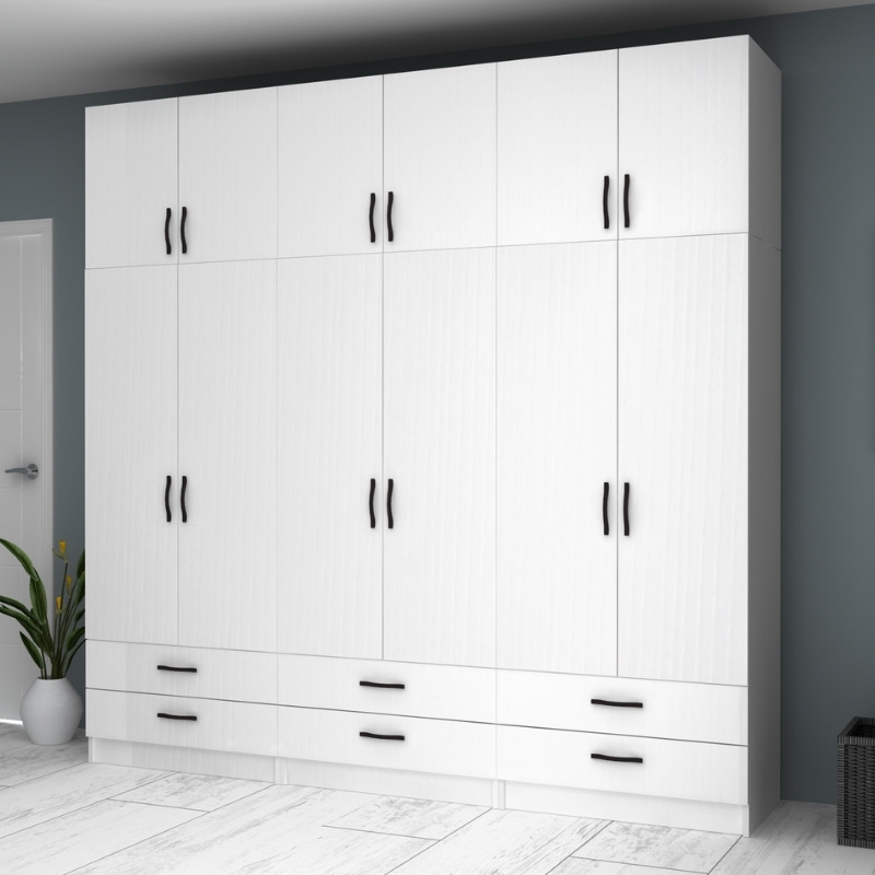 Ντουλάπα ρούχων Ricardo Megapap εξάφυλλη με πατάρι και συρτάρια χρώμα λευκό 240×61,8×240εκ.