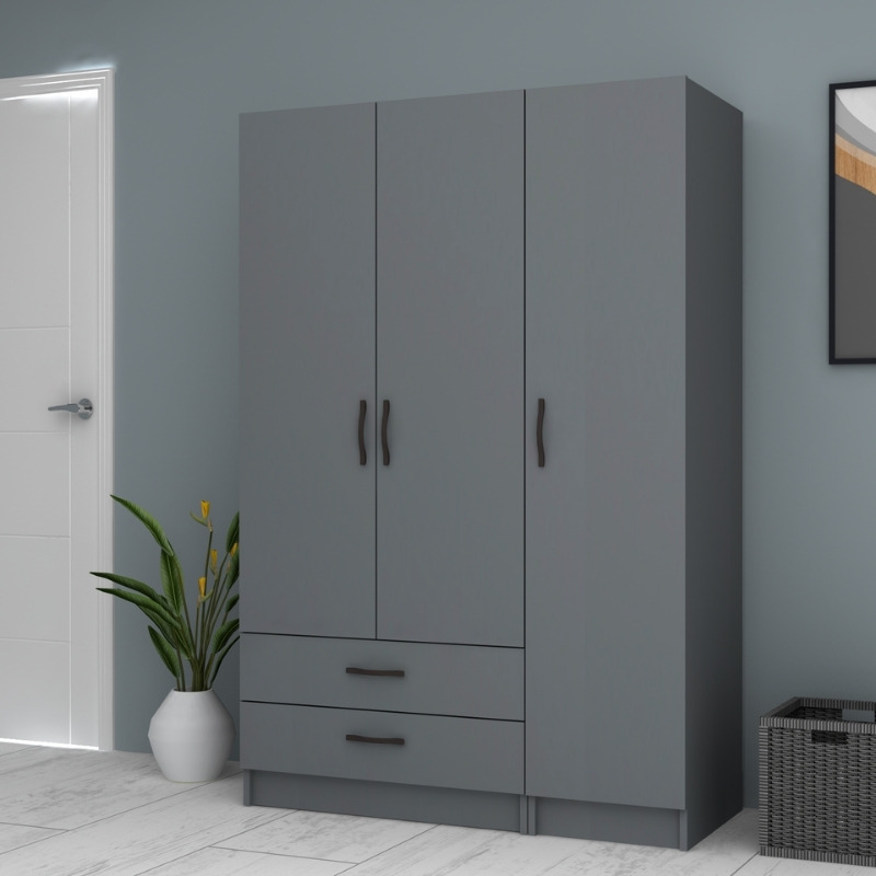 Ντουλάπα ρούχων Ricardo Megapap τρίφυλλη με συρτάρια χρώμα ανθρακί 120×61,8×181εκ.