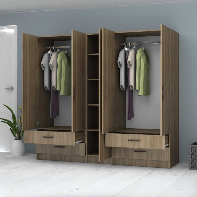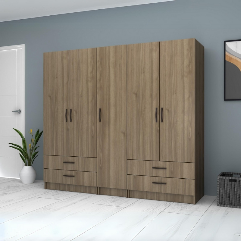 Ντουλάπα ρούχων Ricardo Megapap πεντάφυλλη με συρτάρια χρώμα καρυδί 200×51,8×181εκ.