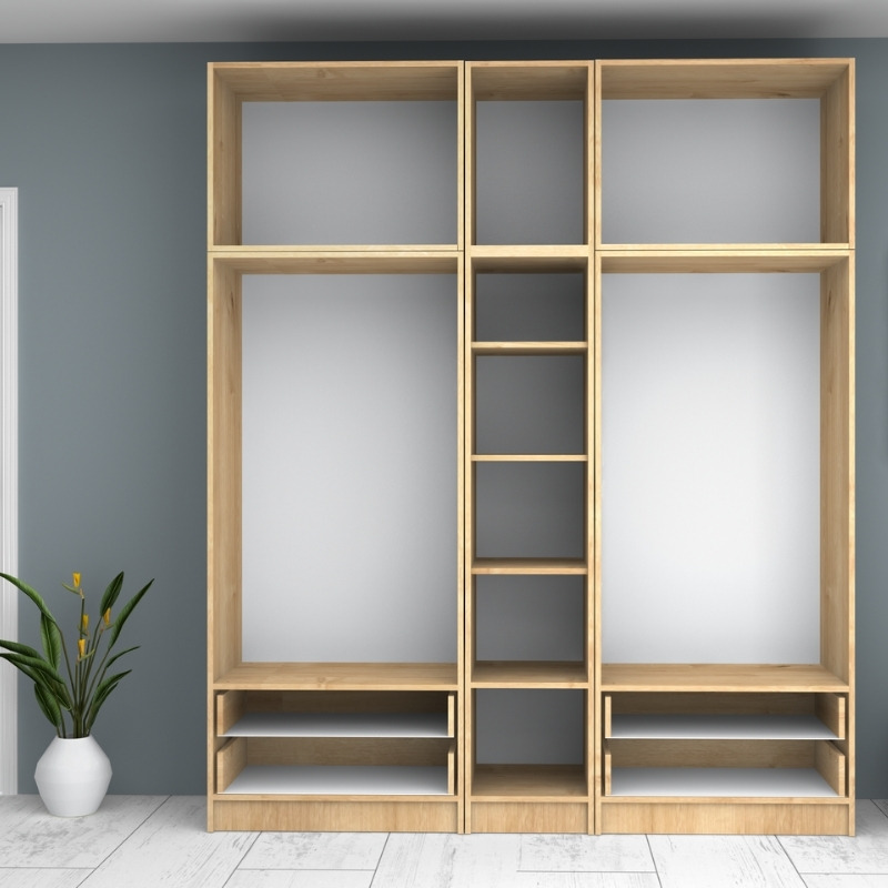 Ντουλάπα ρούχων Ricardo Megapap πεντάφυλλη με πατάρι και συρτάρια χρώμα φυσικό οξιάς 200×51,8×240εκ.