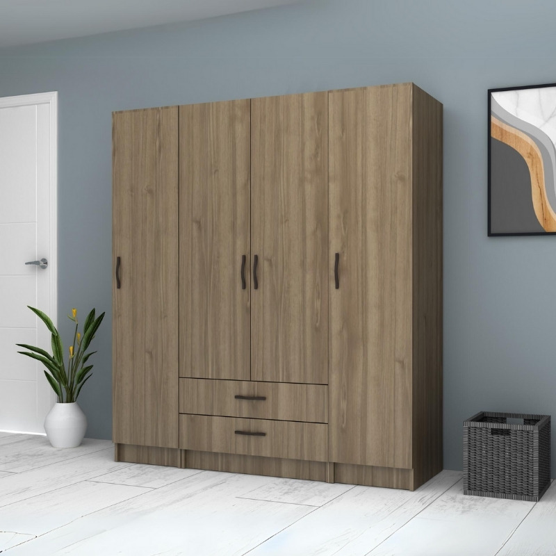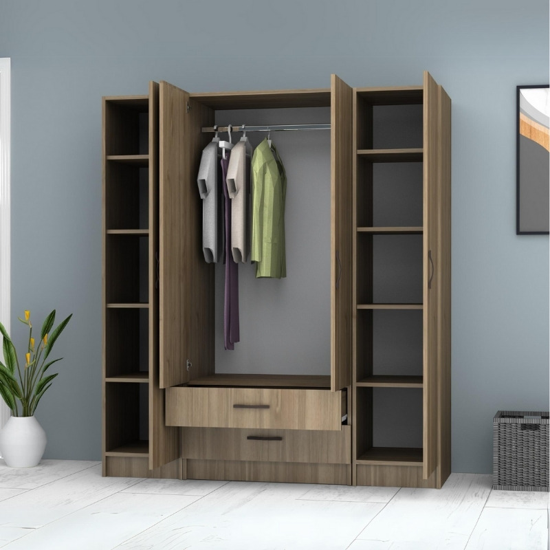 Ντουλάπα ρούχων Ricardo Megapap τετράφυλλη με συρτάρια χρώμα καρυδί 160×51,8×181εκ.