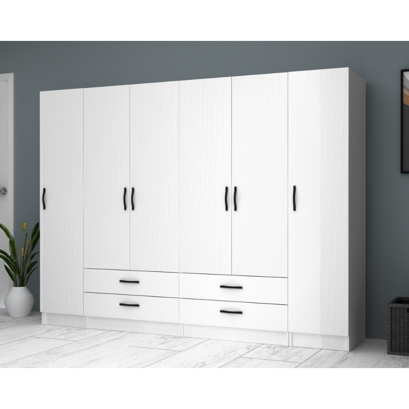 Ντουλάπα ρούχων Ricardo Megapap εξάφυλλη με συρτάρια χρώμα λευκό 240×51,8×181εκ.
