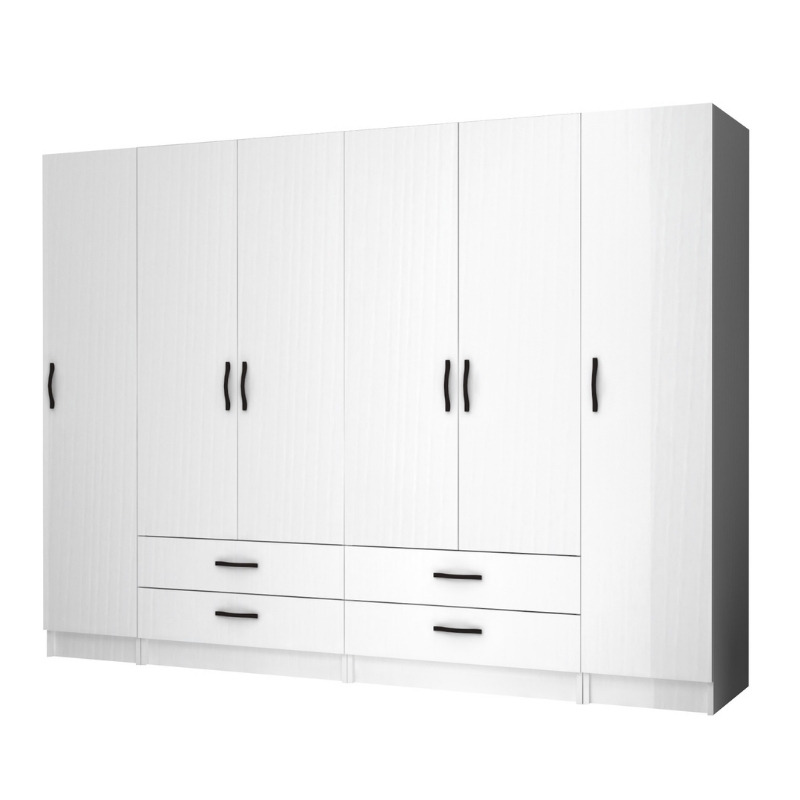 Ντουλάπα ρούχων Ricardo Megapap εξάφυλλη με συρτάρια χρώμα λευκό 240×61,8×181εκ.