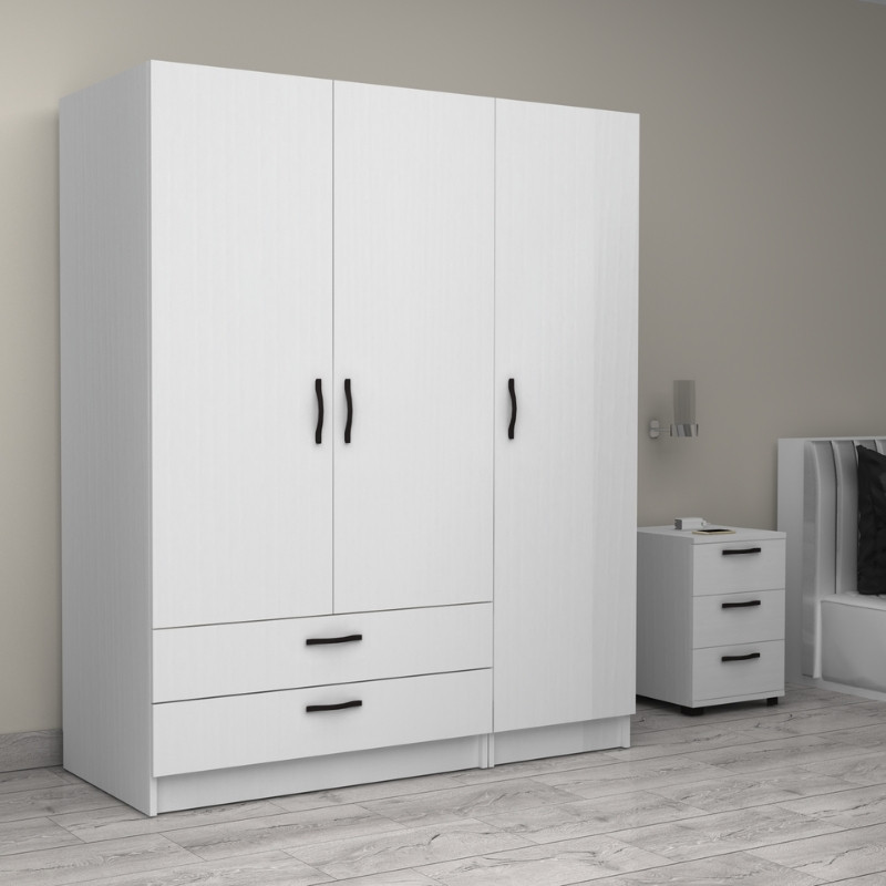 Ντουλάπα ρούχων Victoria Megapap τρίφυλλη με συρτάρια χρώμα λευκό 150x60x181εκ.