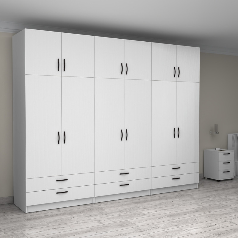 Ντουλάπα ρούχων Victoria Megapap εξάφυλλη με πατάρι και συρτάρια χρώμα λευκό 300x60x240εκ.