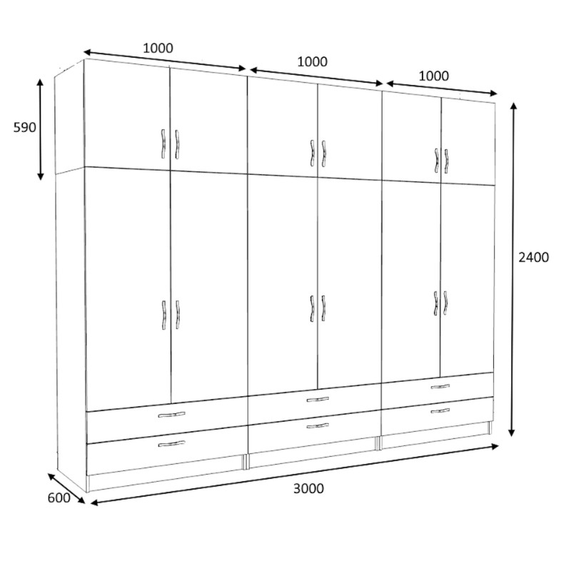 - Διαστάσεις ντουλάπας: Μήκος 300 x Βάθος 60 x Ύψος 240 εκ.