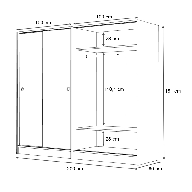 - Διαστάσεις: Μήκος 200 x Βάθος 60 x Ύψος 181 εκ.