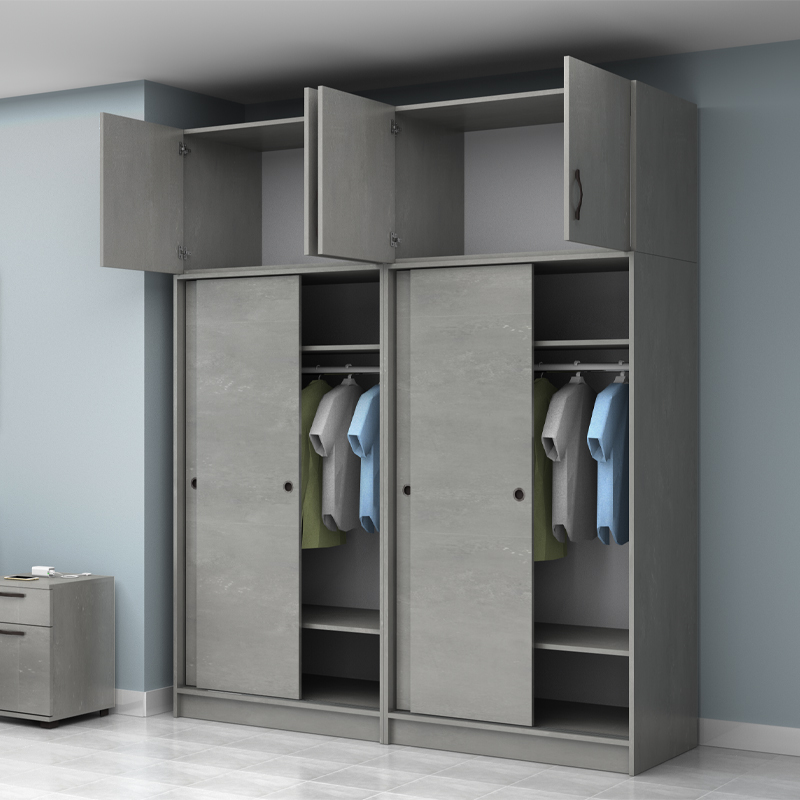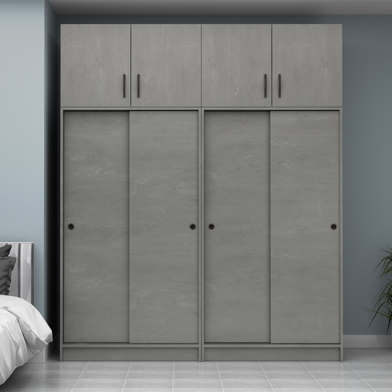 Ντουλάπα ρούχων Regio Megapap τετράφυλλη συρόμενη με πατάρι χρώμα γκρι σκυροδέματος 200x60x240εκ.