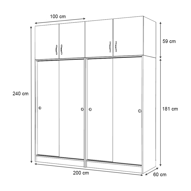 • Διαστάσεις ντουλάπας: Μήκος 200 x Βάθος 60 x Ύψος 181 εκ.