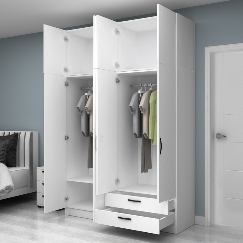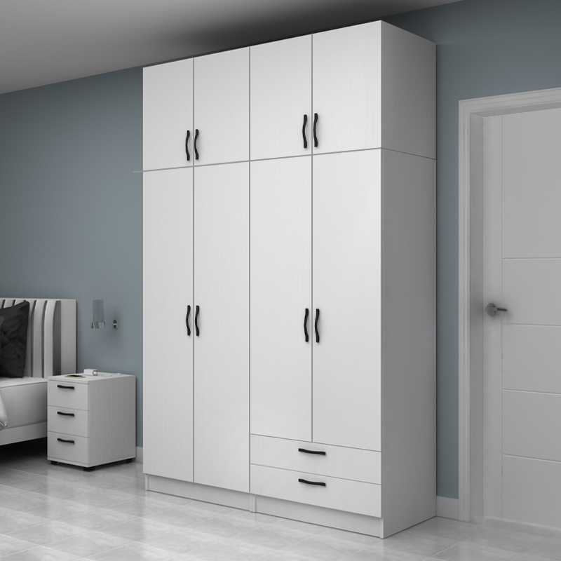Ντουλάπα ρούχων Vivian Megapap τετράφυλλη με πατάρι και συρτάρια χρώμα λευκό 160×51,8×240εκ.